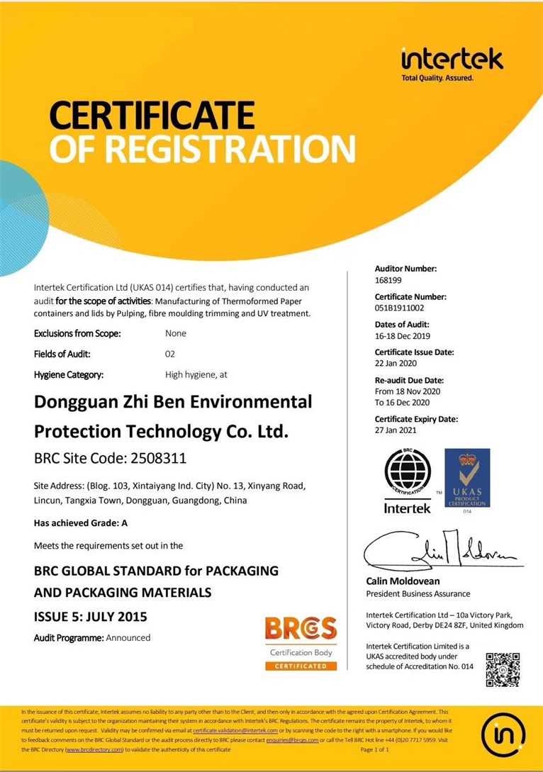 祝東莞市植本環(huán)保科技有限公司在創(chuàng)思維驗(yàn)廠之家專業(yè)輔導(dǎo)下通過ITS  BRC認(rèn)證并取得A級(jí)證書