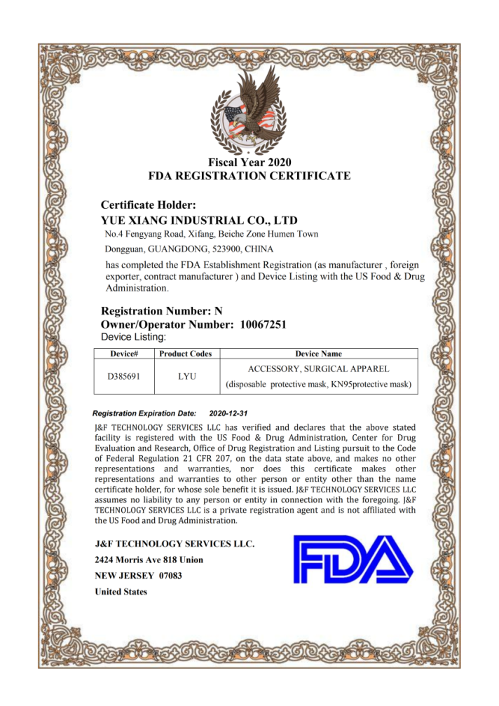 恭祝東莞市越祥實業有限公司通過FDA及CE認證