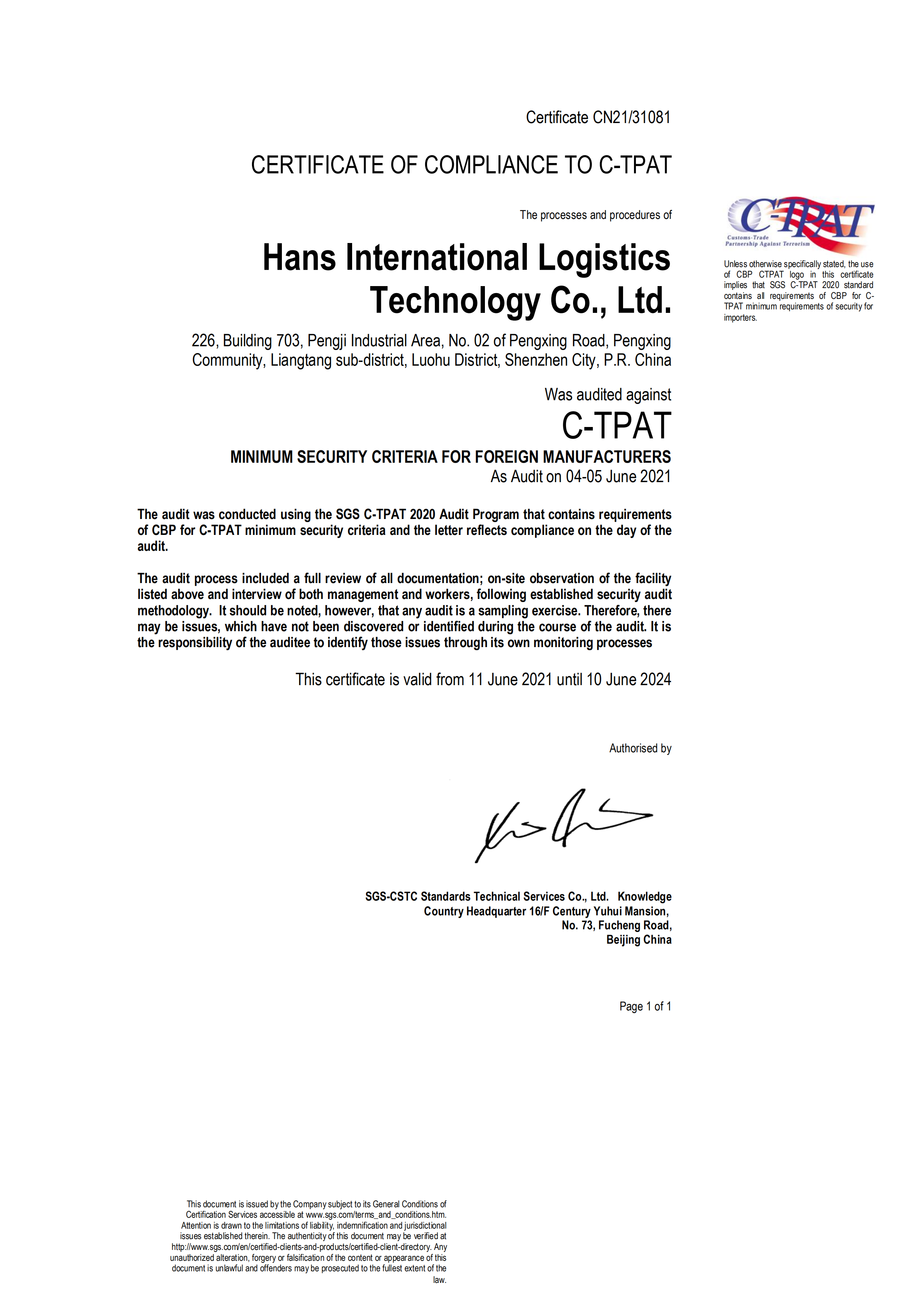 祝深圳市安拓浦科技有限公司通過BSCI驗廠與SGS C-TPAT認證,C-TPAT證書取得行業最高100分