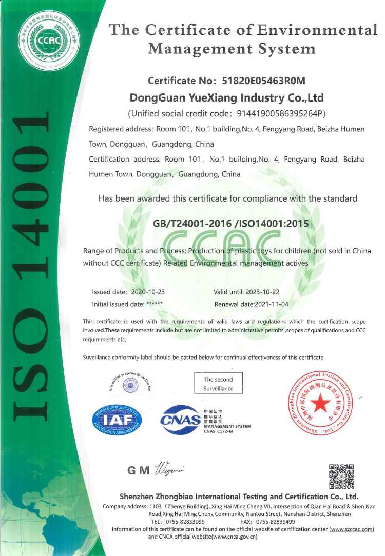 祝東莞市越祥實(shí)業(yè)有限公司通過(guò)ISO9001質(zhì)量認(rèn)證、ISO14001環(huán)境管理體系認(rèn)證