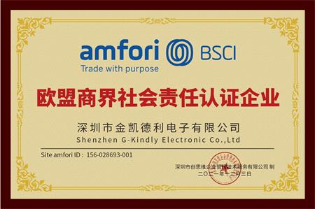 祝深圳市金凱德利電子有限公司通過社會(huì)責(zé)任BSCI審核驗(yàn)廠,創(chuàng)思維為每一位通過amfori BSCI驗(yàn)廠的客戶制作送上牌匾。
