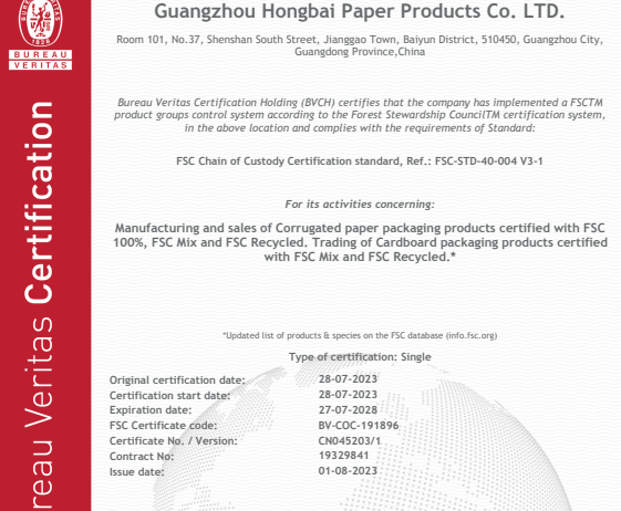 祝賀廣州宏柏印刷包裝有限公司2023年快速通過BV- FSC認(rèn)證