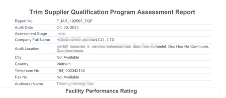 在創(chuàng)思維驗廠網(wǎng)老師專業(yè)技術(shù)、全程跟進耐心細致輔導(dǎo)以及公司全體員工配合下,一次性順利通過ITS-TQP驗廠審核并且獲得94分,為將來公司發(fā)展奠定了良好的發(fā)展基礎(chǔ),既開拓了市場同時也增加了消費者對公司的信賴,在這里再次祝賀HONGKONG俊文(越南)有限公司2023年一次性成功通過ITS-TQP驗廠審核并且獲得94分,同時也期待未來再次與創(chuàng)思維驗廠網(wǎng)合作!